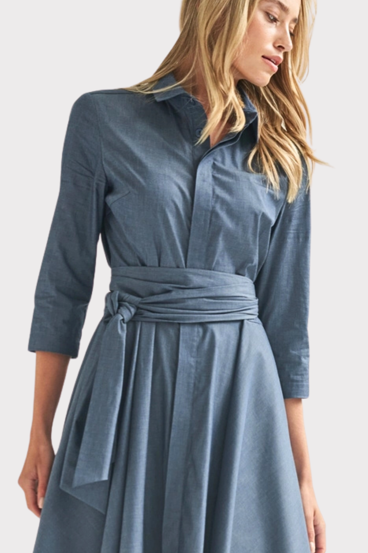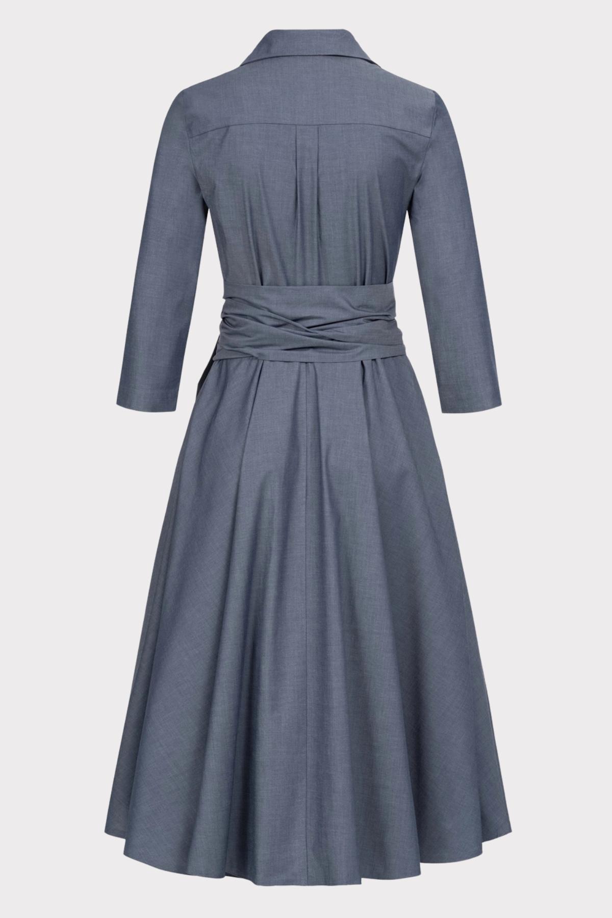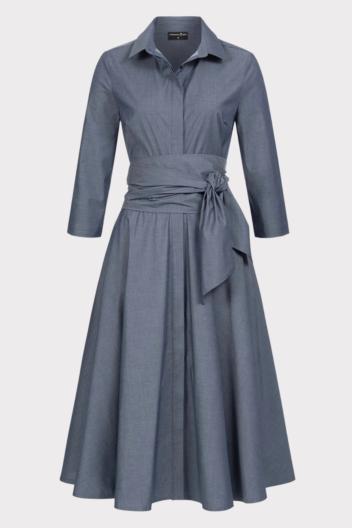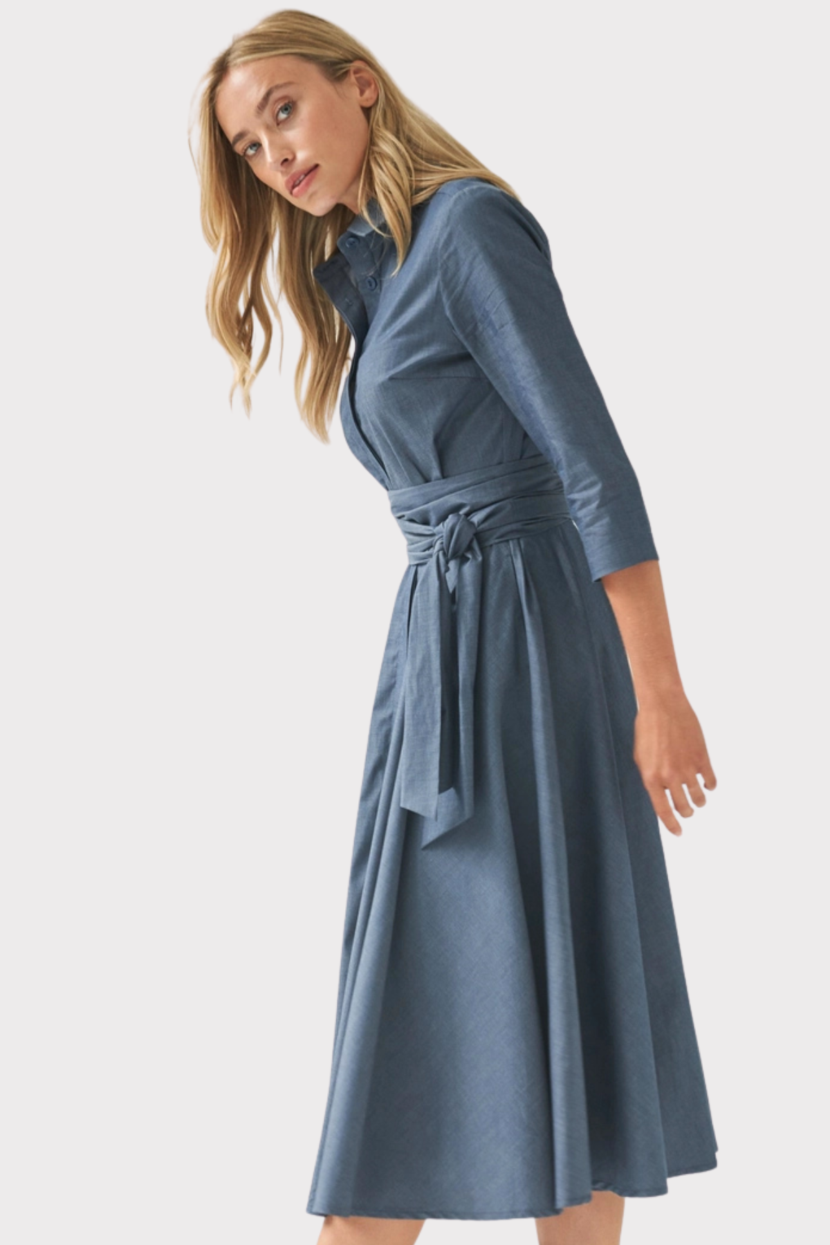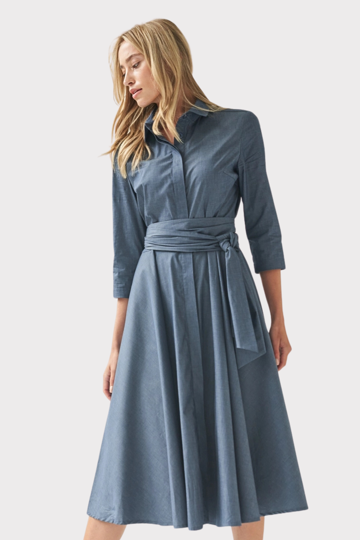 Timeless, versatile, and effortlessly chic, this dark denim blue Deri Classic Shirtdress, designed and made in Europe, moves elegantly with you from day to night. Featuring a softly swinging skirt and a flattering tie belt that defines the waist, it transitions seamlessly from office hours to afternoon strolls and evening plans. Style it with sneakers for a relaxed daytime look, or with stilettos or sandals for a sophisticated, elegant finish. Crafted from a comfortable 97% cotton blend with 3% elastane, this dress is a timeless piece you’ll reach for again and again.
