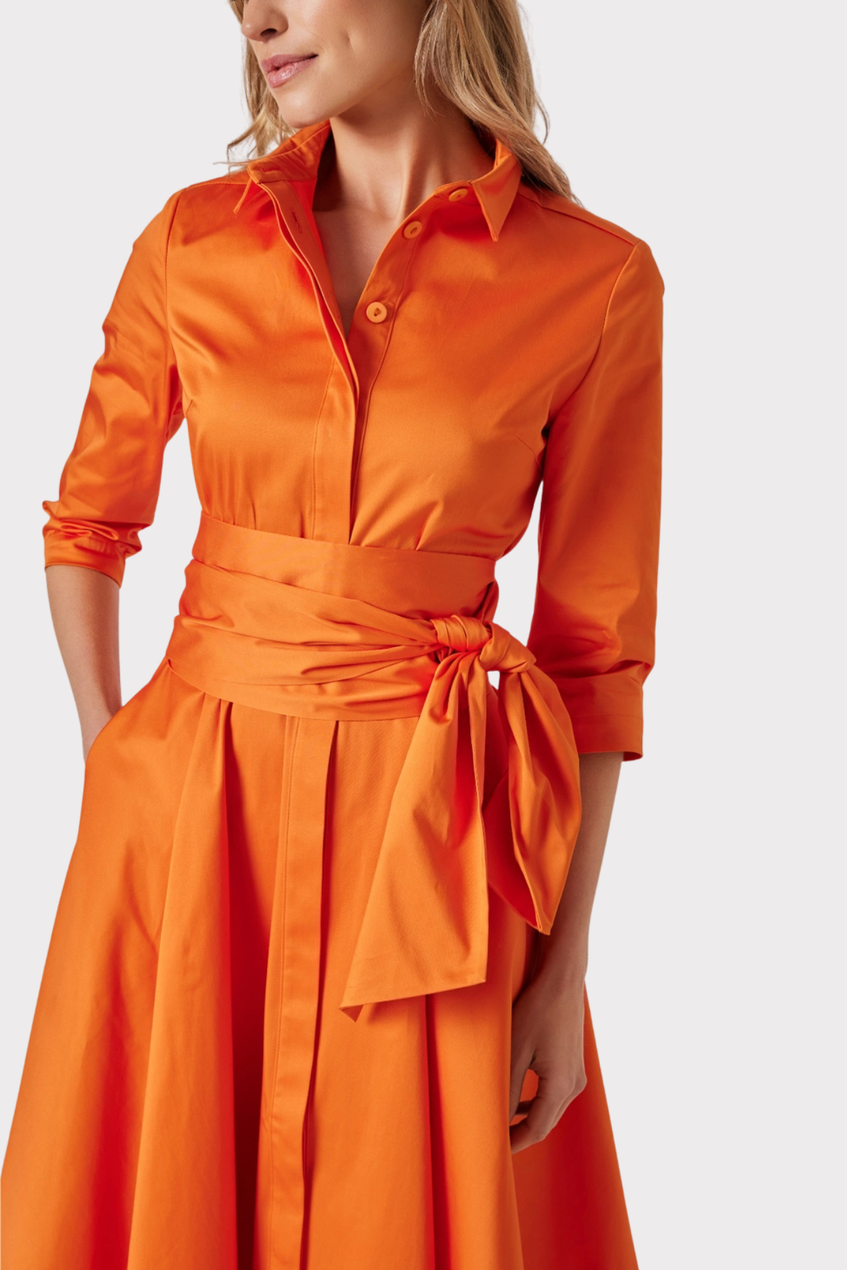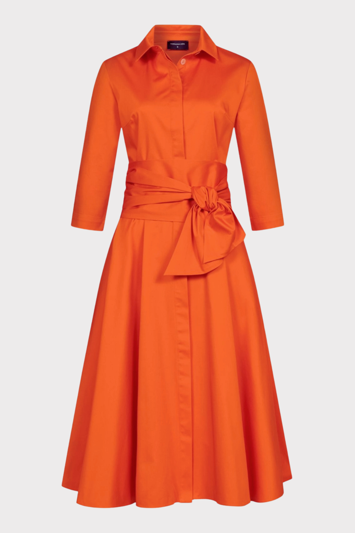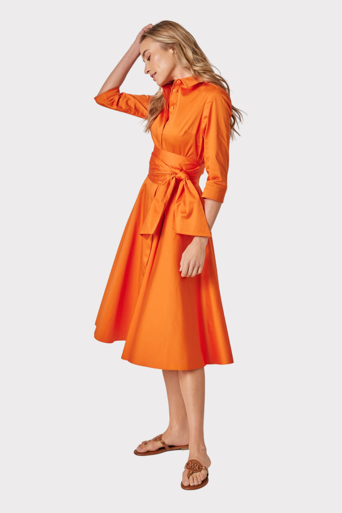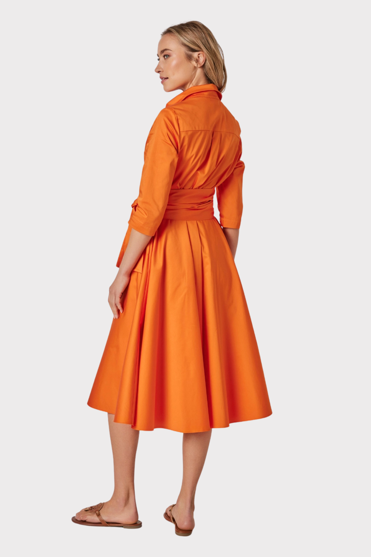 Timeless, versatile, and effortlessly chic, this beautiful Deri Classic Orange Shirtdress, designed and made in Europe, moves elegantly with you from day to night. Featuring a softly swinging skirt and a flattering tie belt that defines the waist, it transitions seamlessly from office hours to afternoon strolls and evening plans. Style it with sneakers for a relaxed daytime look, or with stilettos or sandals for a sophisticated, elegant finish. Crafted from a comfortable 97% cotton blend with 3% elastane, this dress is a timeless piece you’ll reach for again and again.